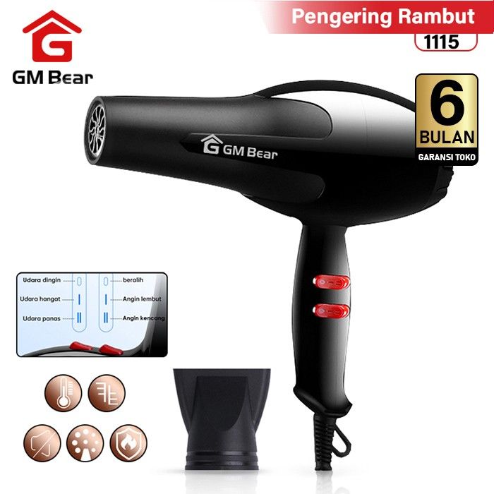 GM Bear Hair Dryer Pengering Rambut Hitam 1115-Compact Hair Dryer