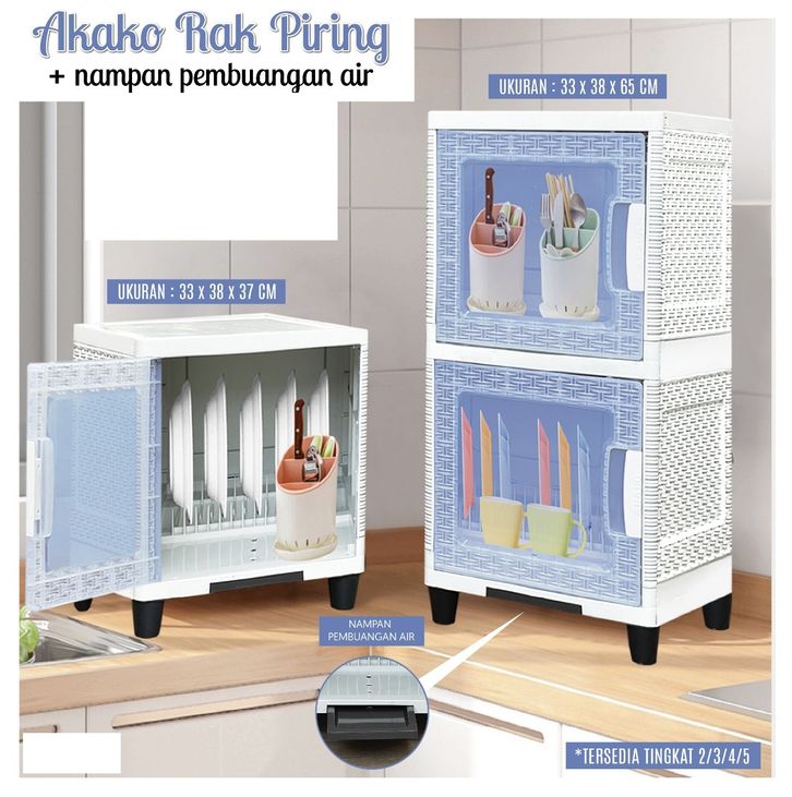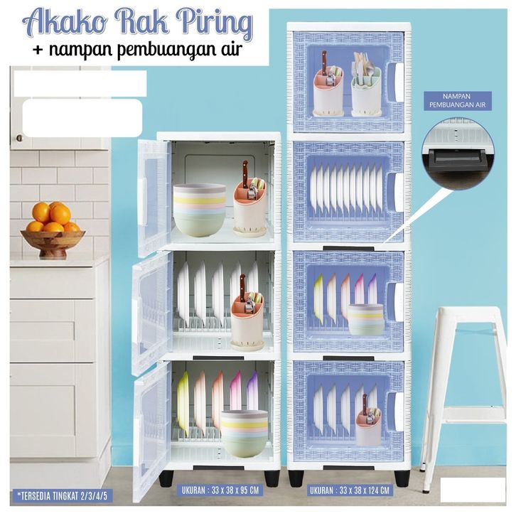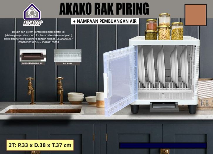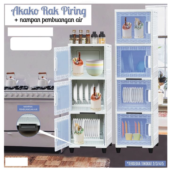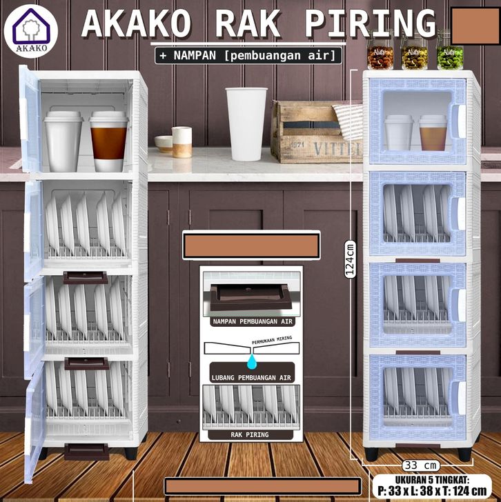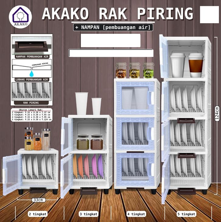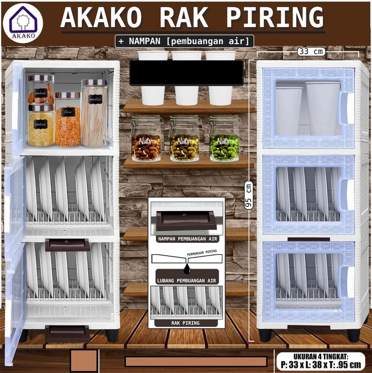 AKAKO - Rak Piring & Nampan + Kaca Transparan Full Rak Bahan Ori