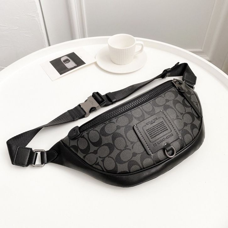 Tas Pria Coach Rivington Belt Bag In Signature Canvas Black