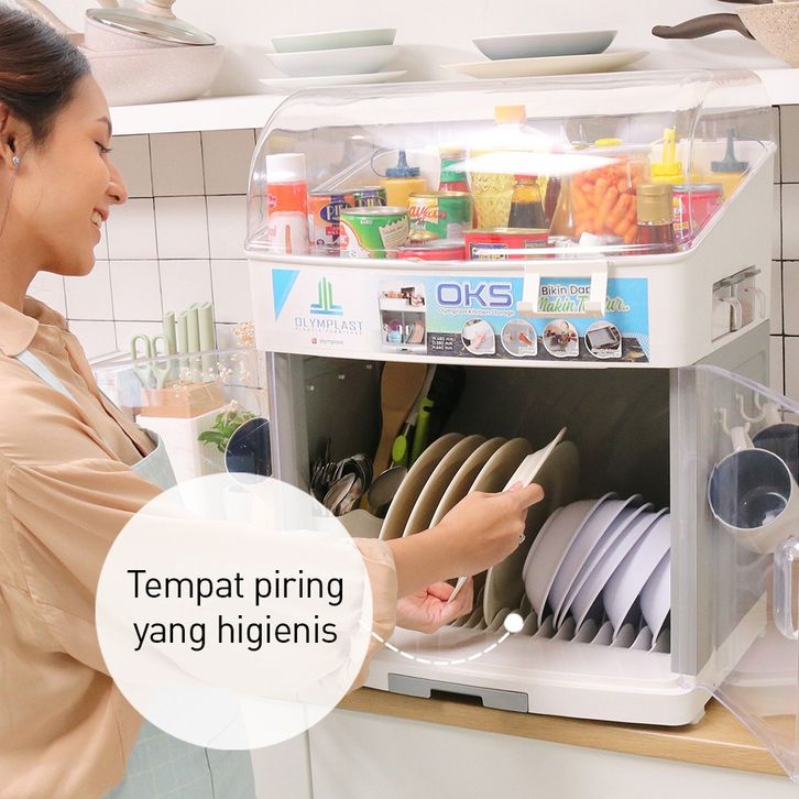 Rak Piring Tertutup Olymplast Kitchen Storage OKS White Grey