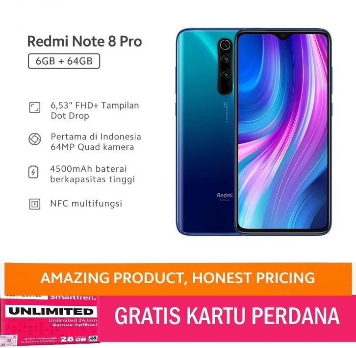 XIAOMI REDMI NOTE 8 PRO RAM 6/128GB GARANSI - CASE PREMIUM MURAH 2nd (FREE SIM CARD)