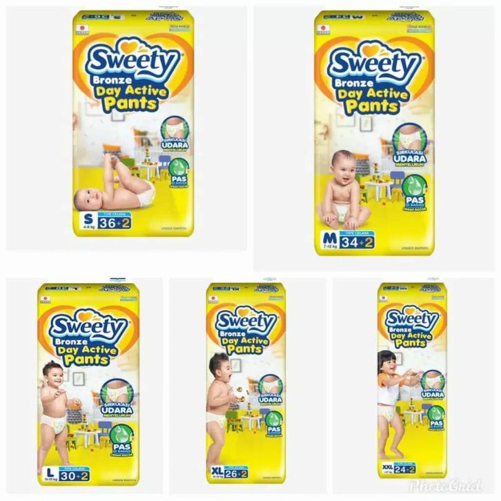 S, M, L, XL, XXL, Sweety Bronze Pants Popok Bayi