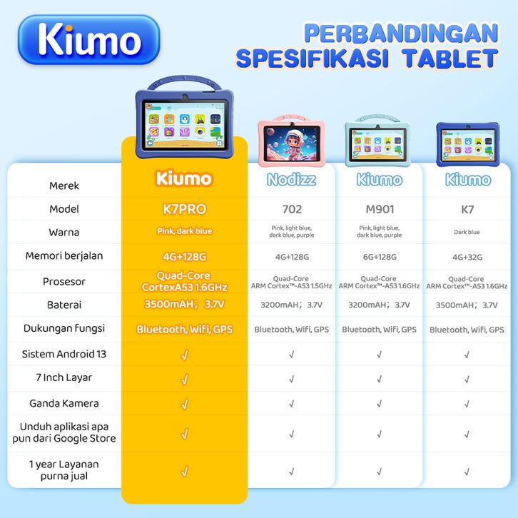 Kiumo tablet anak android 13 untuk belajar K7 PRO 4GB+128GB 7 Inch Kamera Ganda Garansi 1 Tahun Original Official
