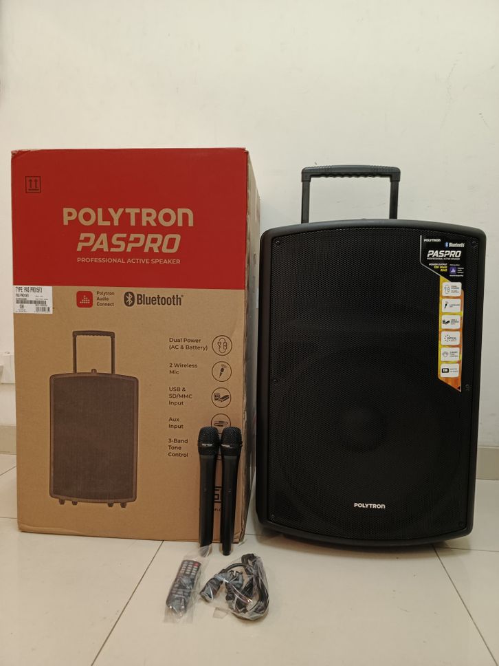 SALON SPEAKER AKTIF POLYTRON PAS PRO 15F3 PAS PRO 15 F3 ORIGINAL BLUETOOTH USB FM 2 MIC KARAOKE BIG BASS