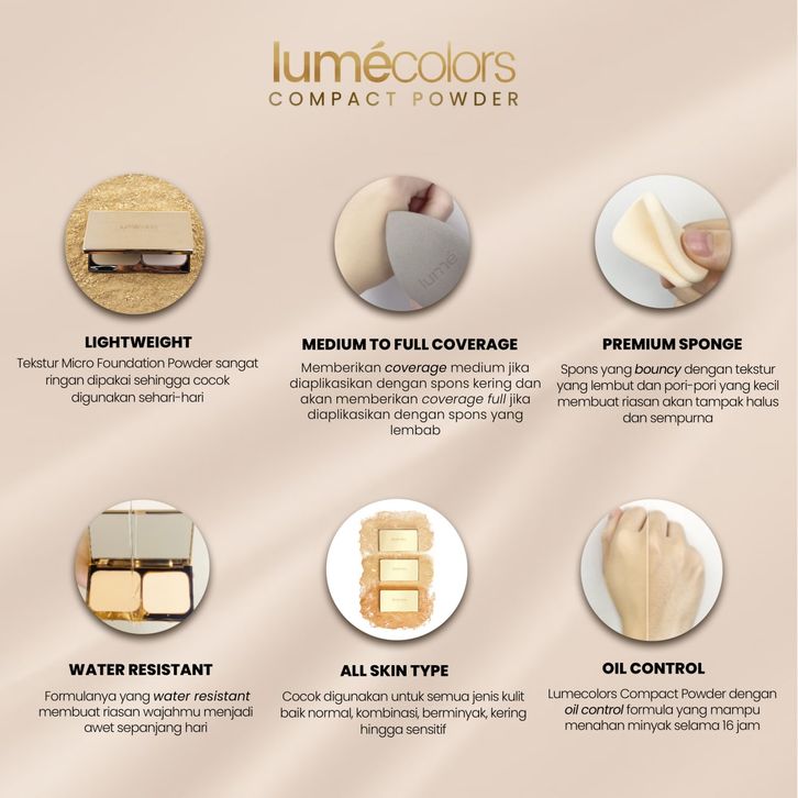 Agen Lumecolors Bedak Padat Compact Powder Two Way Cake Pore Blurring Effect with Oil Control shade SAND