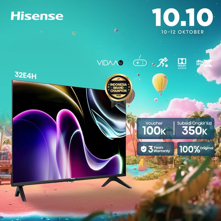 Hisense 32 inch 2K VIDDA HD Smart TV Bezelless Design USB HDMI Model 32E4H