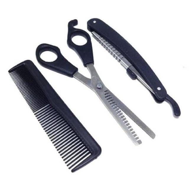3in1 Set Alat potong Rambut Sasak Sisir cukur lipat