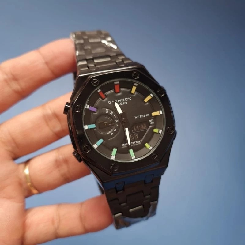 JAM TANGAN PRIA G-SHOCK GM-2100 BLACK DIAL RAINBOW STAINLESS STEEL FREE ONGKIR - FREE BOX