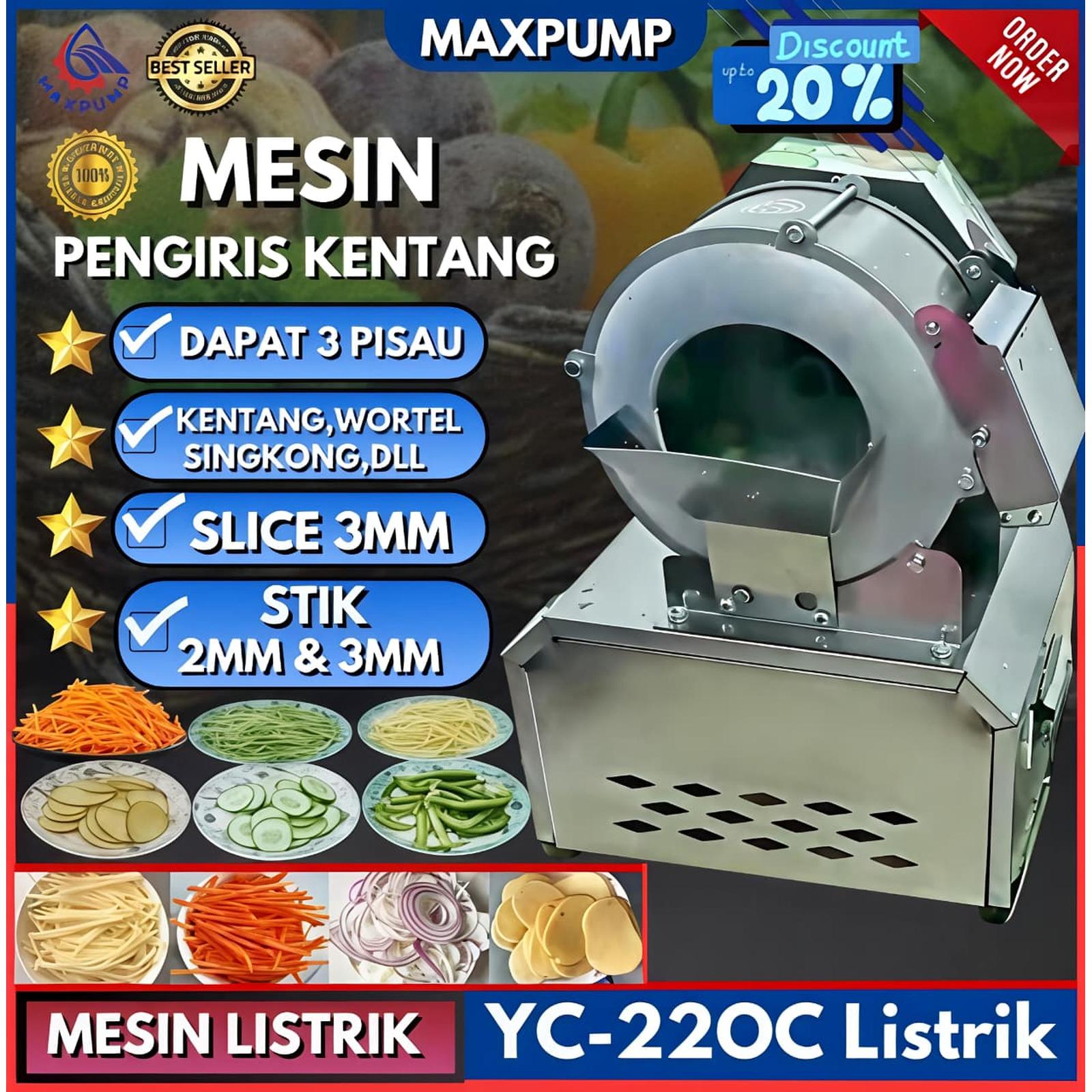MAXPUMP YC-22OC Listrik Alat Pemotong Kentang dengan Listrik Alat Mesin Pengiris Singkong 2mm