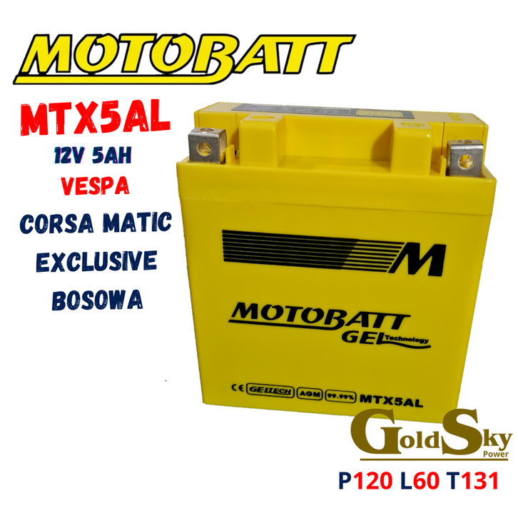 AKI KERING MOTOBATT VESPA CORSA MATIC BOSOWA EXCLUSIVE MTX5AL GM5Z GT6A YB5L MF