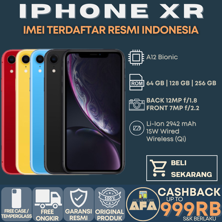 Apple iPhone XR 256GB 128GB 64GB Original Garansi Resmi iBox Black White Blue Yellow Red