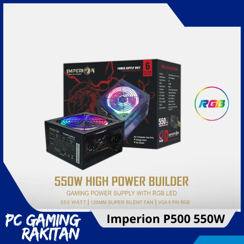 Power Supply Imperion P500 550W LED VGA 6 PIN RGB , PSU Gaming , Power Suplai , Power Suply