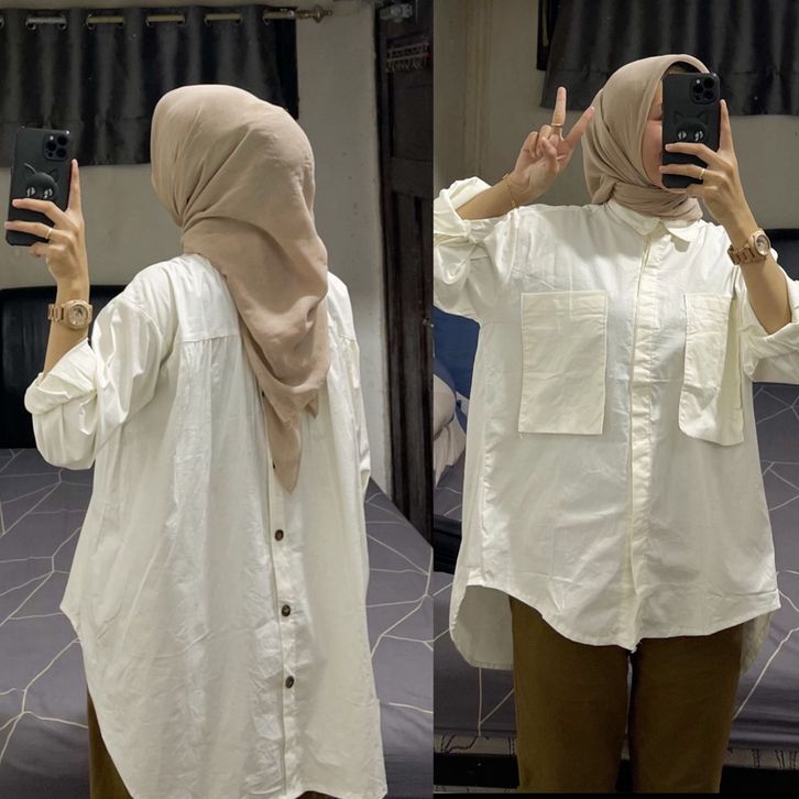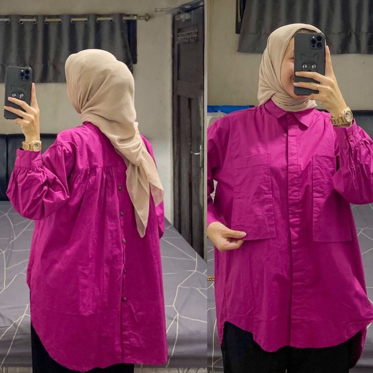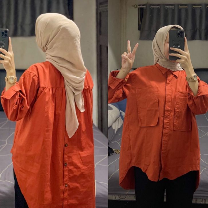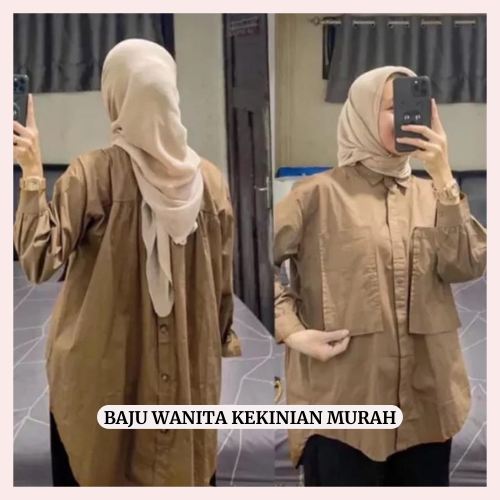kemeja wanita lora top baju blouse wanita pocket full kancing aktif busui friendly kekinian termurah