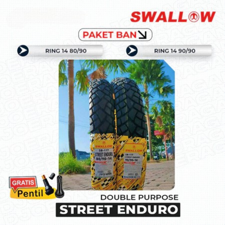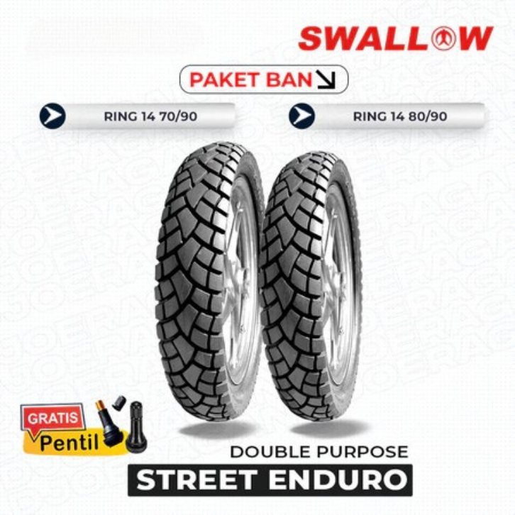 SEPASANG BAN TUBELESS SWALLOW STREET ENDURO RING 14 MOTOR MATIC DUAL PURPOSE DEPAN BELAKANG MIO BEAT VARIO GENIO