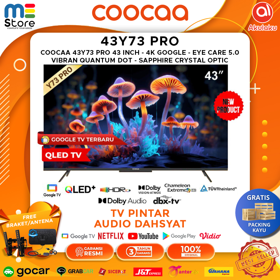 RESMI | Coocaa Google TV 43Y73PRO 43 Inch Y73 PRO | QLED+ 4K UHD Google Voice Control | HDR10+ Dolby Audio Bluetooth 5.1