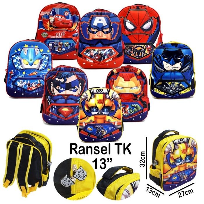 FREE ONGKIR TAS RANSEL SEKOLAH TK ANAK LAKI LAKI SUPERHERO ZOOM 3D TIMBUL IMPORT