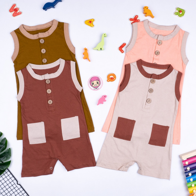 Lullaby Pocket Jumper Bayi 0-2 Tahun | Pocket Button Playsuit Romper Bodysuit Baju anak