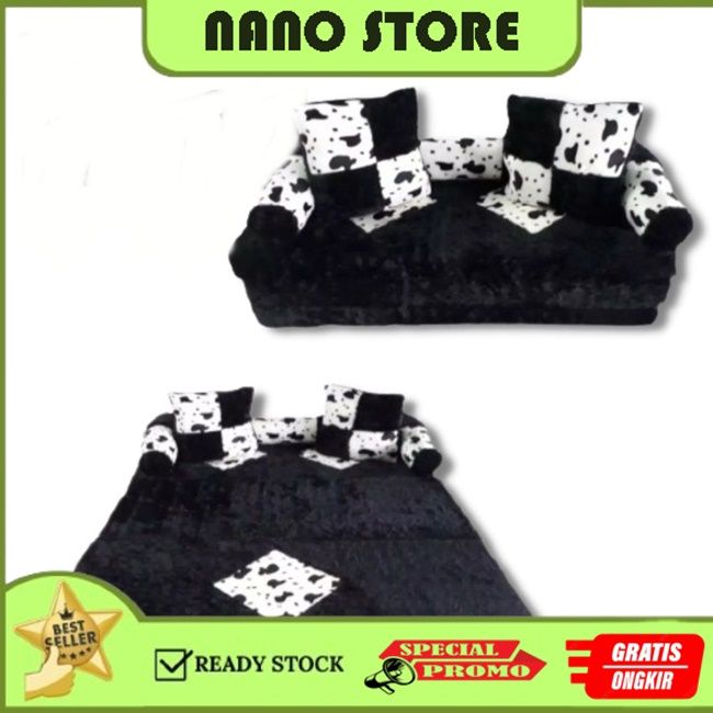 Sofa Bed Minimalis Karakter Bulu Rasfur Motif Pink Hello Kitty UK 140x180x10 cm - GRATIS ONGKIR