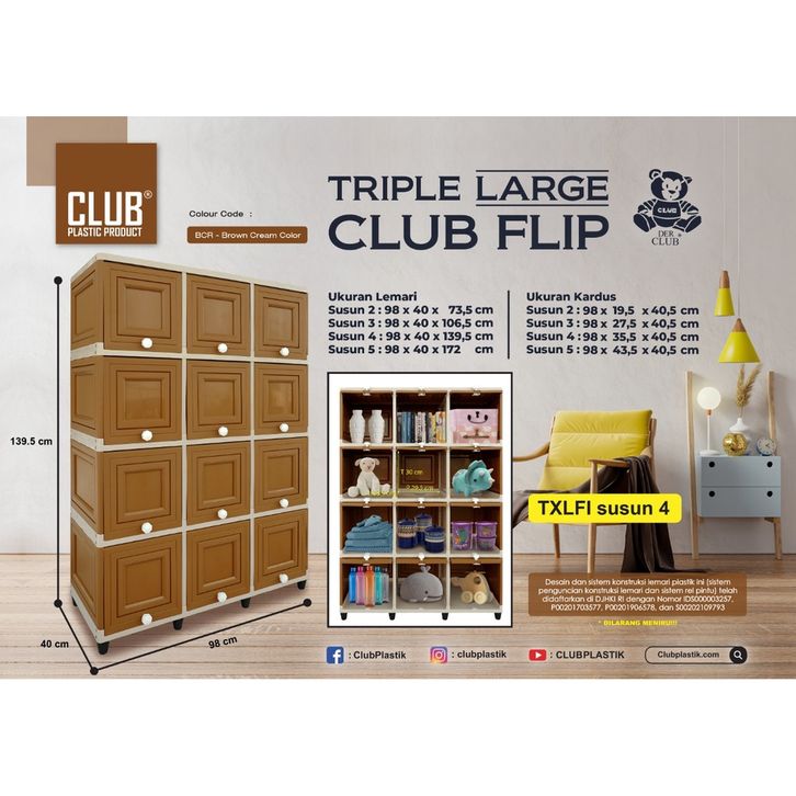 Rak baju - lemari pakaian - rak baju - lemari - lemari Pakaian plastik triple flip 4 susun 12 kotak