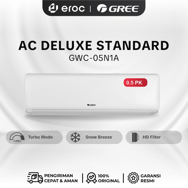 GREE AC DELUXE STANDARD - AC 1/2 PK - GWC-05N1A - KOMPRESSOR UPGRADE - PUTIH (Unit Indoor & Outdoor)