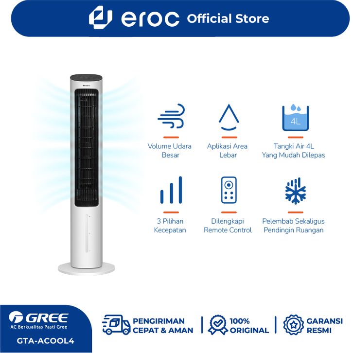 GREE Tower Fan Air Cooler dengan Generator Anion - Penyejuk - Humidifier - Kapasitas 4 Liter - Model GTA-ACOOL4