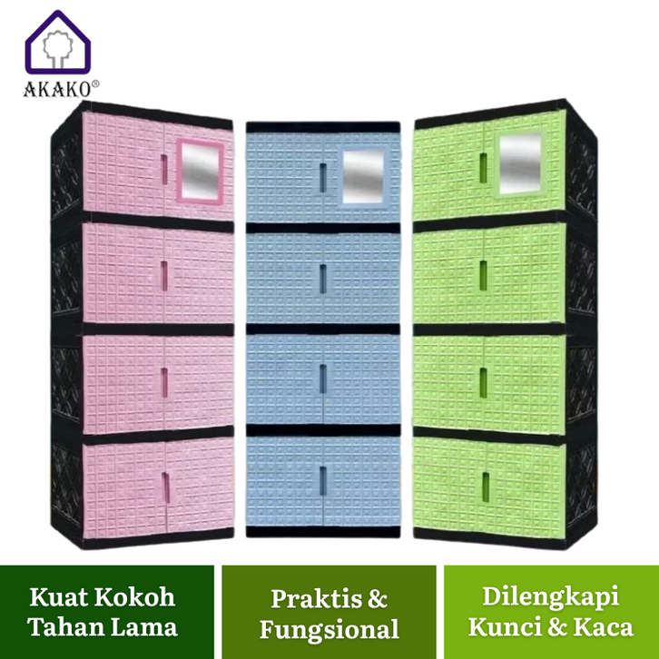 LEMARI PLASTIK PAKAIAN 4 SUSUN JUMBO BERKUALITAS RAK BAJU SUSUN MINIMALIS ESTETIK MODERN ROTAN DIAMOND + KACA MURAH