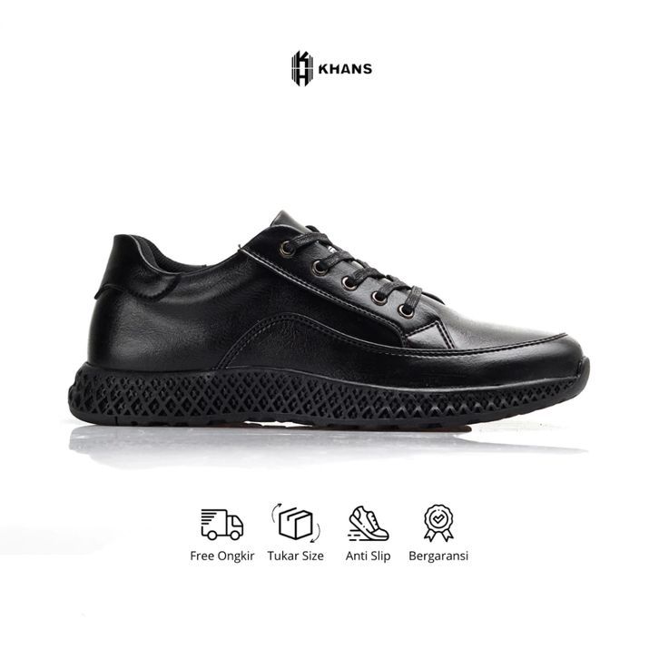 KHANS Sepatu Pria Formal Casual Hope Black Original Sepatu Pria Kulit Asli Sepatu Kerja Pria Kantor Sepatu Kulit Hitam