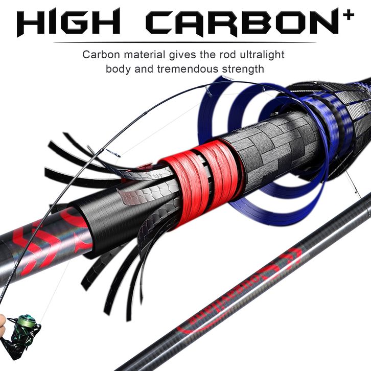 Sougayilang Joran Pancing 1.68m 1.8M Spinning Fishing Rod Casting Fishing Pole 2 Sections Carbon Fiber Fishing Pole Fish