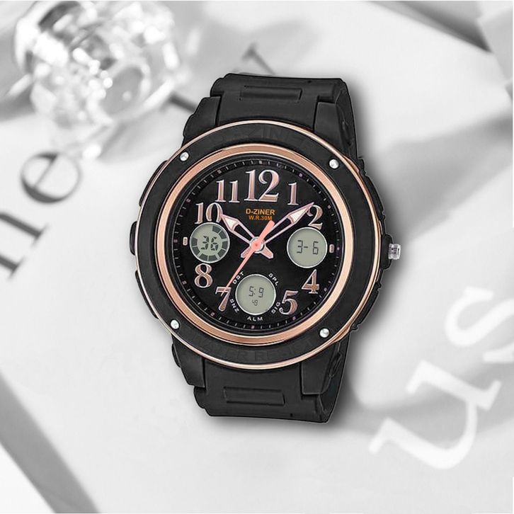 Jam Tangan Wanita D-ziner / D-ziner Original Cewek Double Time DZ 1068 - Tali Rubber - Jam Tangan Murah