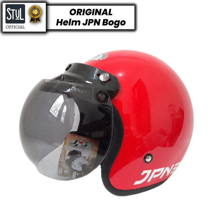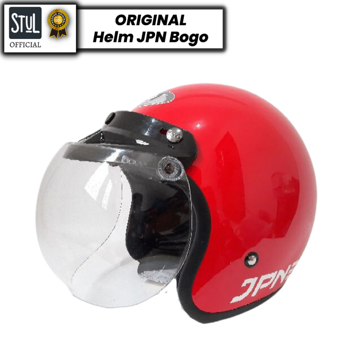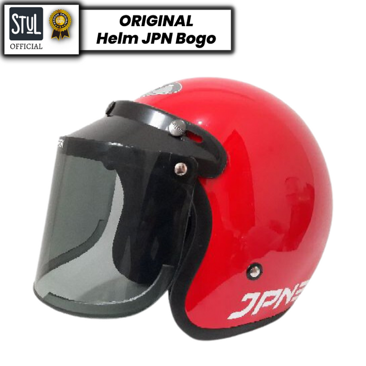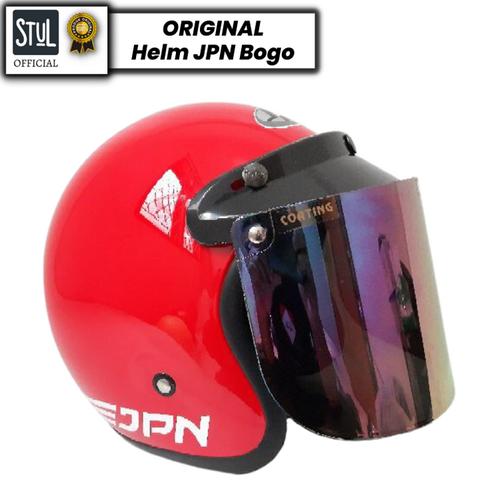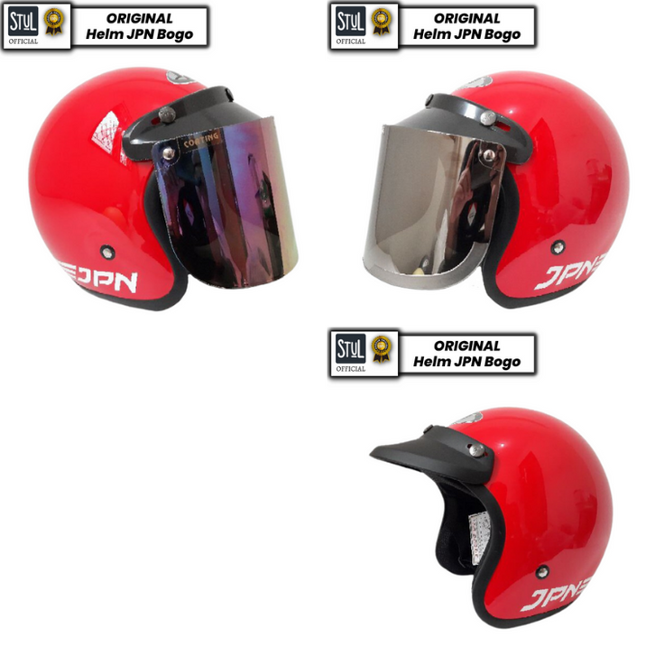 Helm Bogo Jpn Merah Cabe Metalic - Helm Bogo Jpn Kaca Datar Kaca Cembung Original SNI Helem Polos