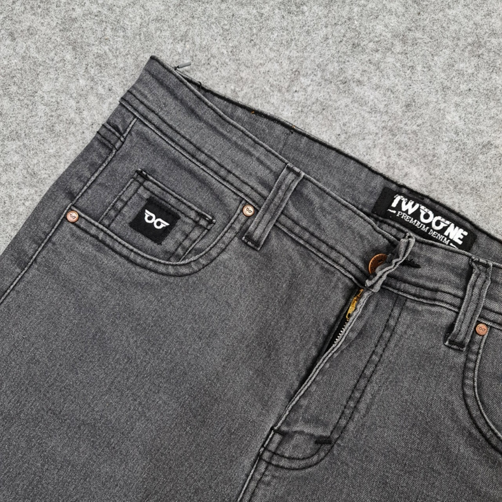 TWO ONE Celana Jeans Pria Panjang Celana Denim Casual Pria Slimfit Abu Abu Free Ongkir
