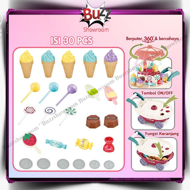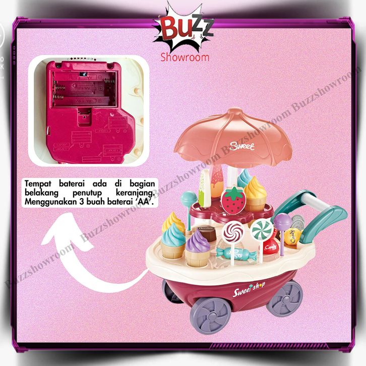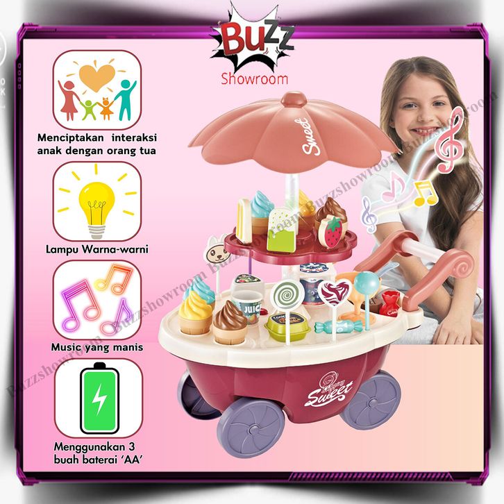 Ice Cream Candy Cart Sweet Stroller Mainan Anak Gerobak Es Krim Set