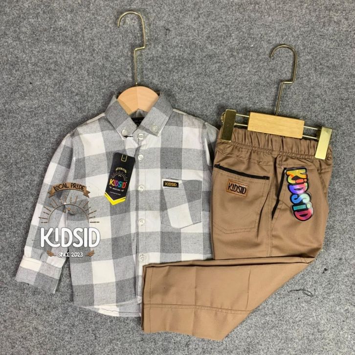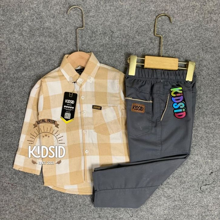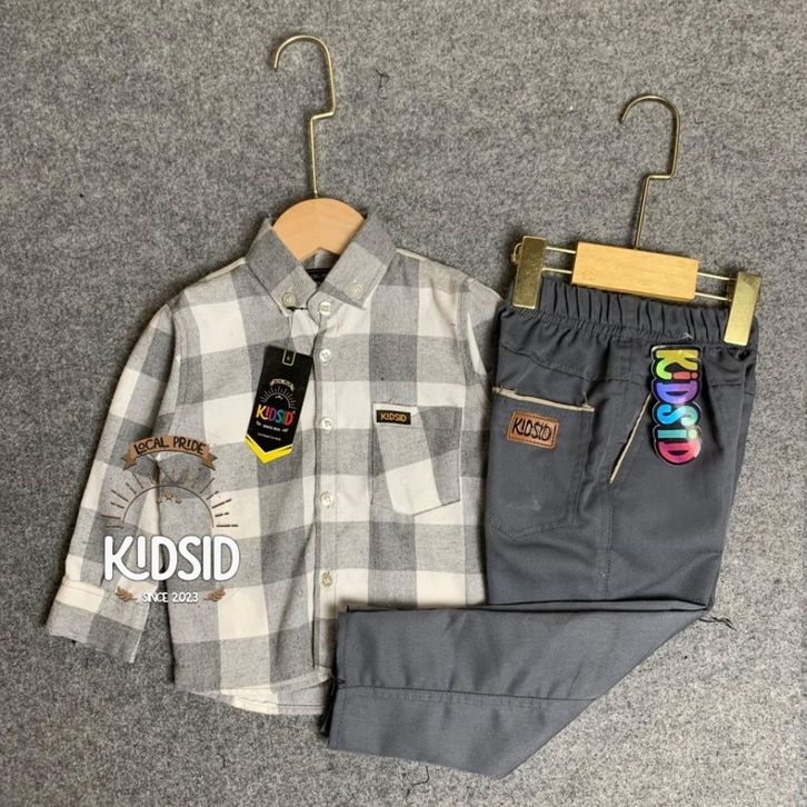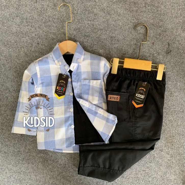 Setelan kemeja anak laki laki kemeja flanel celana chinos panjang setelan kemeja anak bayi cowok usia 1-14 tahun TERBARU