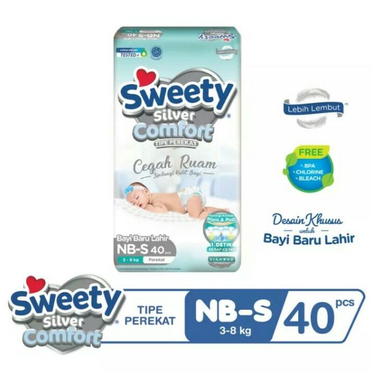 SWEETY SILVER COMFORT POPOK BAYI PEREKAT NB-S40