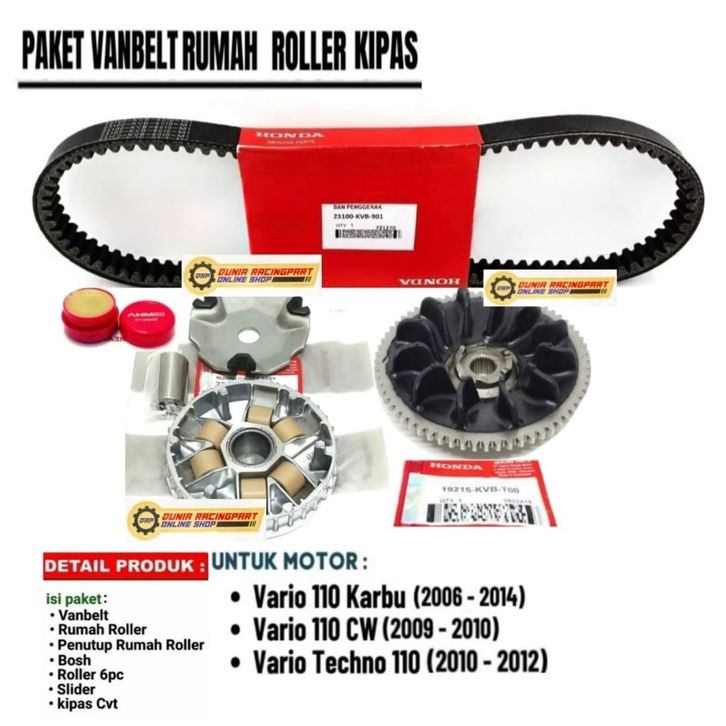 PAKET CVT VARIO KARBU VARIO TECHNO CBS 110 LAMA KVB KOMPLIT PULLY ASSY KIPAS RUMAH ROLLER VANBELT VANBEL PULI PULLI