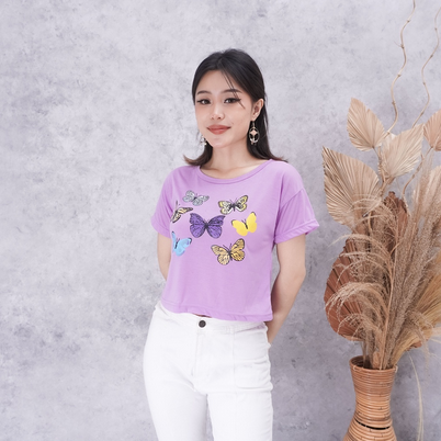 LILAC T-SHIRT CROP TOP WANITA | KAOS LENGAN PENDEK TUMBLR WANITA fashion bahan adem