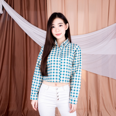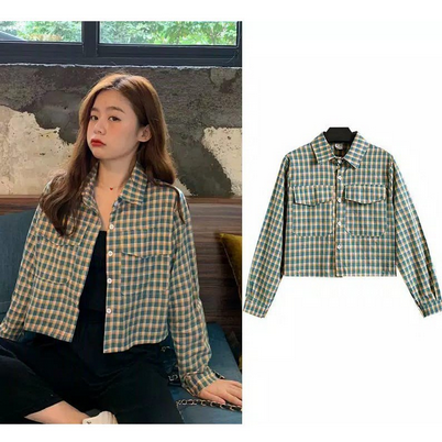 KEMEJA NESYA MINT / KEMEJA TARTAN CROP TOP fashion bahan adem