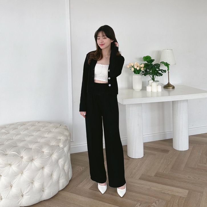 TERBARU Set Casey Premium Knit (Cardi+Pants) / Setelan Baju Wanita Kekinian Crop dan Celana Kulot Premium