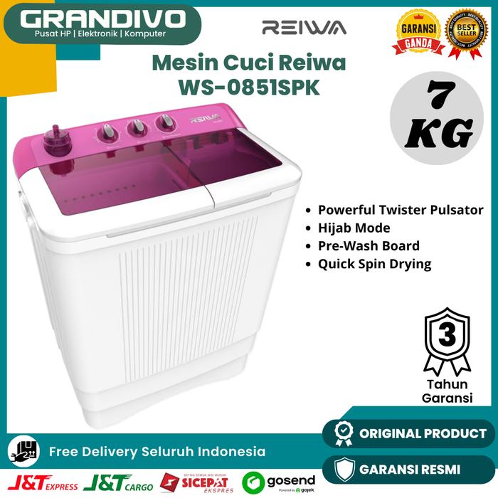 FreeOngkir Mesin Cuci REIWA 2 Tabung Top Loading 7kg WS-0851 Hijab Mode garansi resmi - grandivo