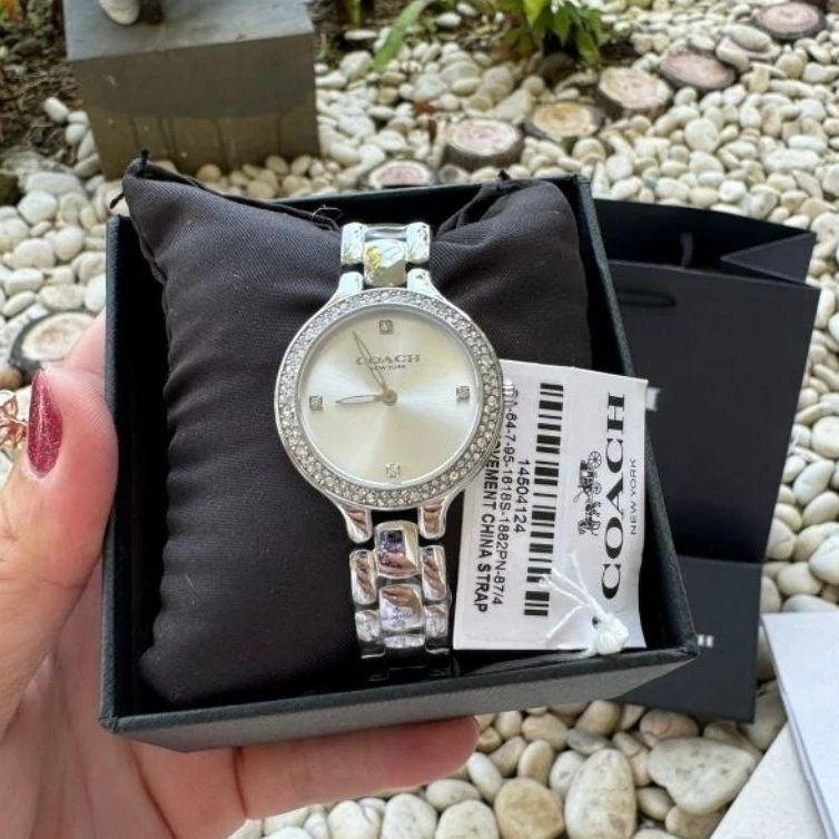 JAM TANGAN WANITA COACH 14504124 FULL SILVER STAINLESS STEEL FREE BOX FREE ONGKIR