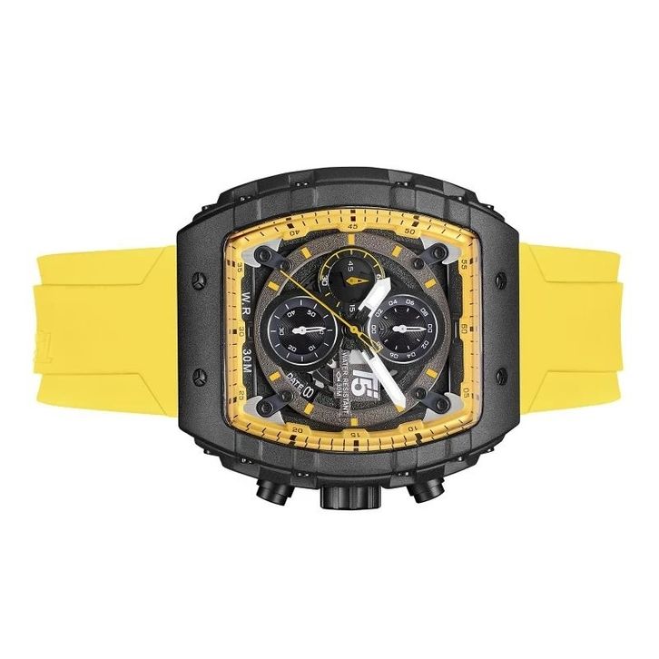 Jam Tangan Pria T5 H 3856 YELLOW BLACK Rubber Original Chronograph Bergaransi-Free tin box