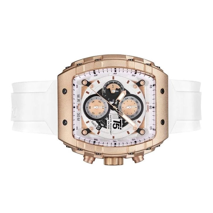 Jam Tangan Pria T5 H 3856 WHITE ROSEGOLD Rubber Original Chronograph Bergaransi-Free tin box