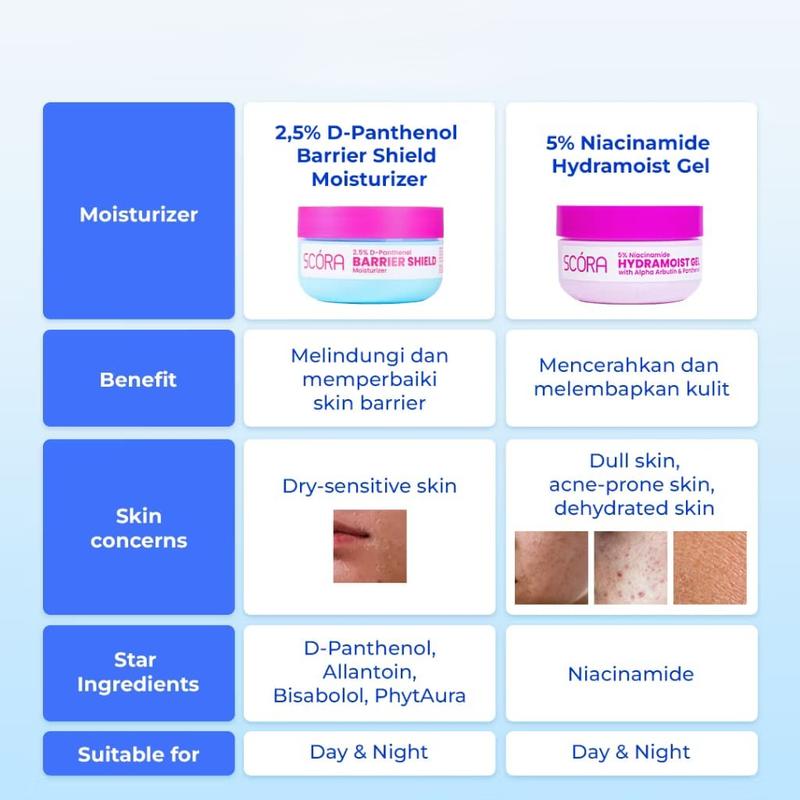 [BPOM] SCORA 5% Niacinamide Hydramoist Gel 45ml | 2,5% D-Panthenol Barrier Shield Moisturizer 40ml - Krim Pelembab Wajah