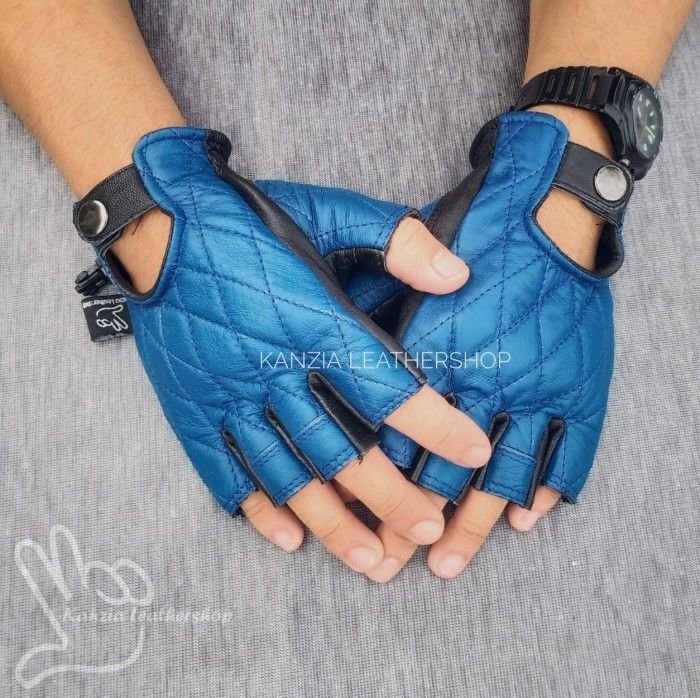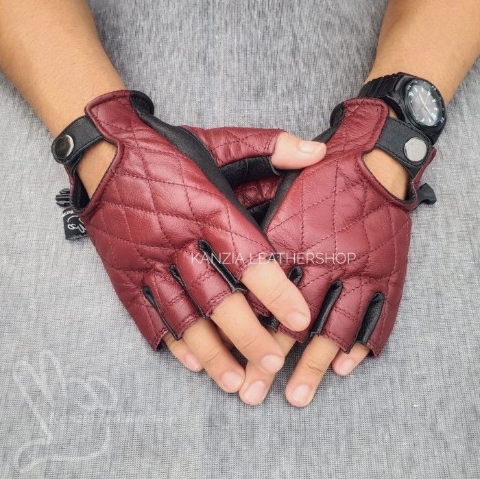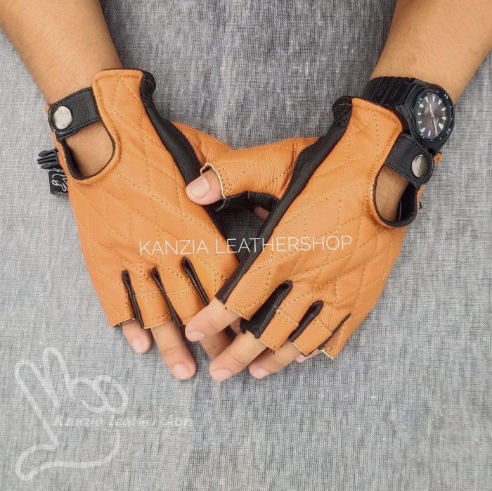 Sarung Tangan Motor Kulit Premium Kanzia Leathershop Setengah Jari - Cokelat Muda