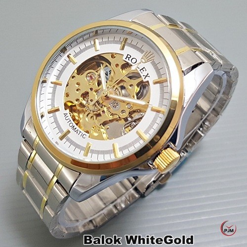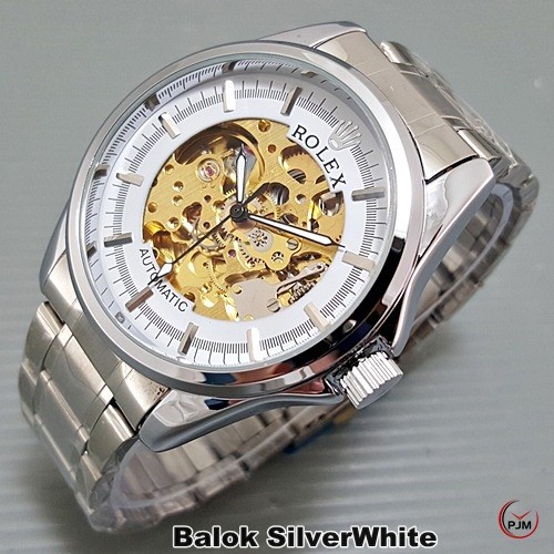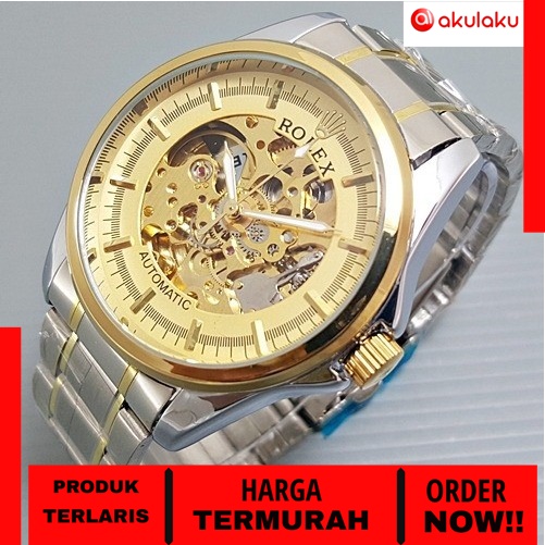 Jam Tangan Automatic Rolex Skeleton Permata Balok Otomatis Pria