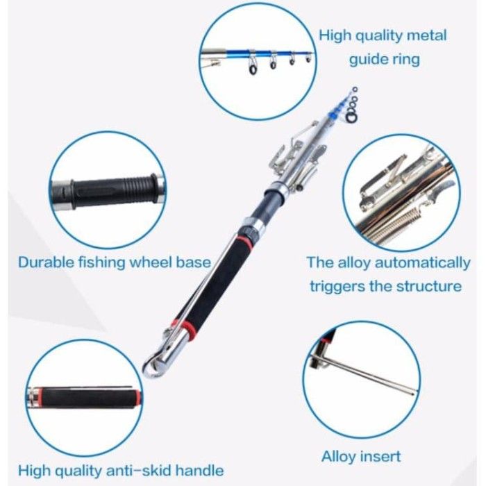 Joran Pancing Otomatis Stainless Steel Tanpa Spool 2.1M Alat Pancing