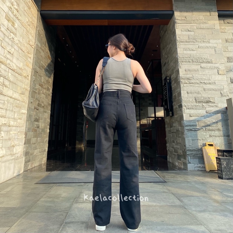 MILA JEANS IN BLACK - CELANA HIGHWAIST BAGGY CUTBRAY JEANS CELANA PANJANG WANITA JEANS