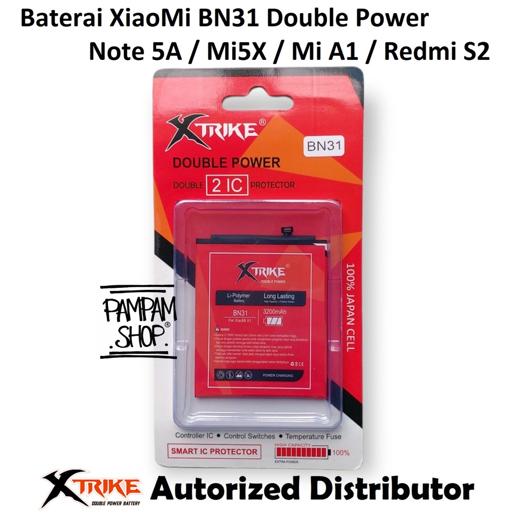 Baterai Xtrike Double Power Original XiaoMi BN31 Redmi S2 Note 5A Prime Mi5X Mi A1 5X Batre Batrai Battery HP Handphone