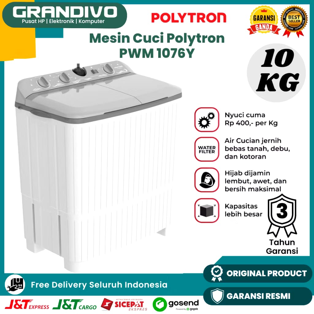 POLYTRON Mesin Cuci 2 Tabung Primadona Giant Series Hijab 10 KG PWM 1076G 1076Y Garansi Resmi - Grandivo
