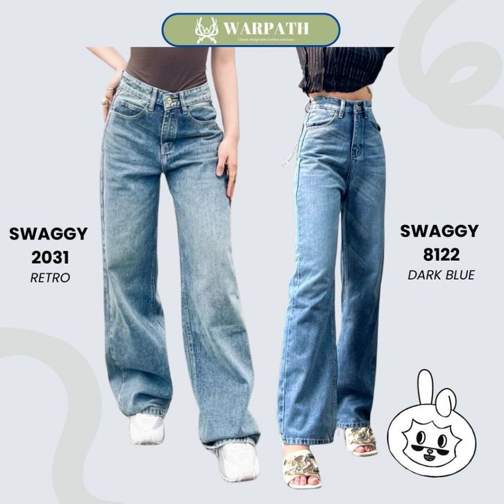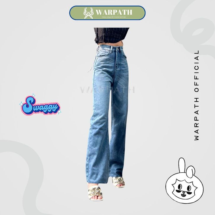 TERLARIS Celana Jeans Wanita WARPATH Highwaist Straight Loose Jeans Dark Blue Finish Cutting Non Stretch Swaggy 8122